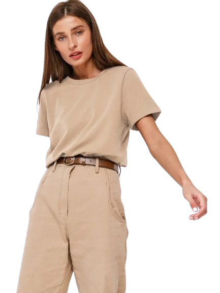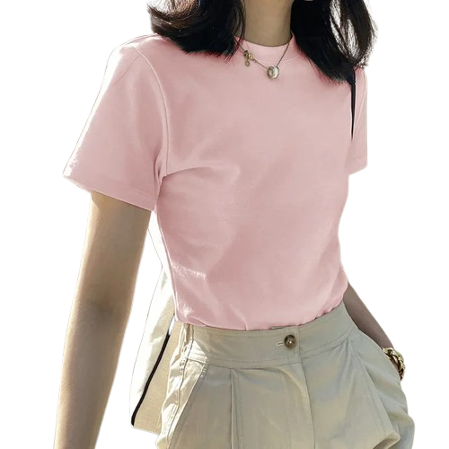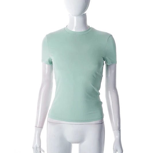 Camiseta feminina de manga curta de algodão, elástica, gola redonda,