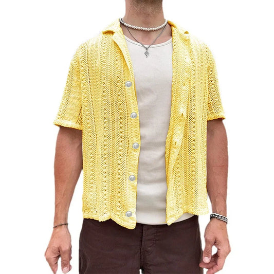 Camisa casual masculina solta de manga curta moda retrô