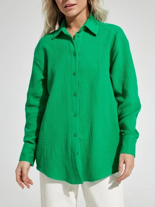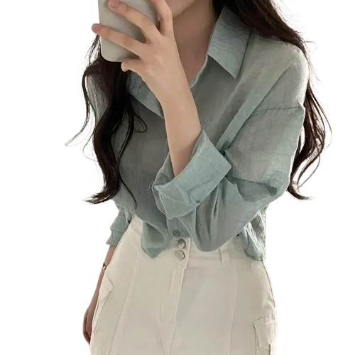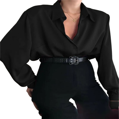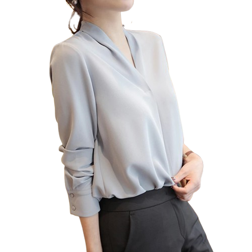 Camisa social feminina clássica de chiffon solta de manga comprida simples