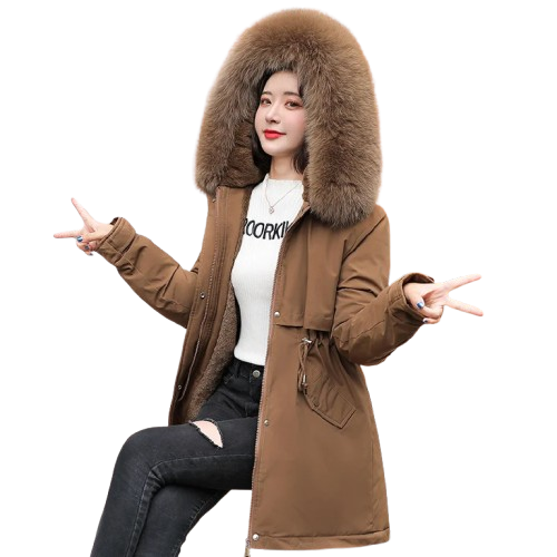 Jaqueta feminina parka com pelúcia