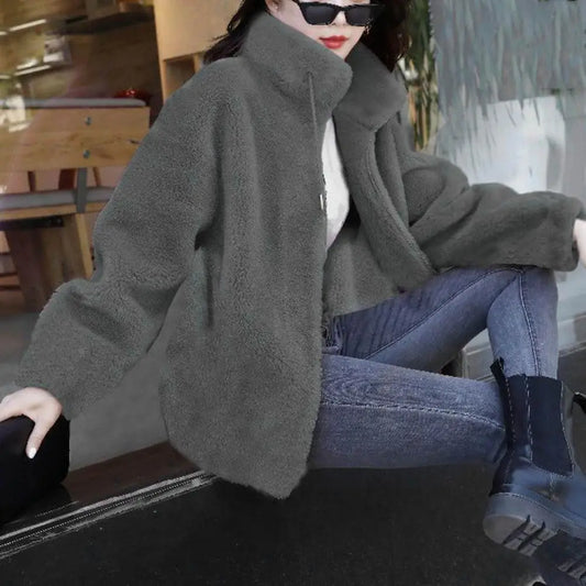 Casaco de lã com zíper de inverno quente de pelúcia