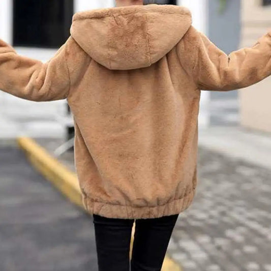 Casaco feminino elegante quente de pelúcia com capuz