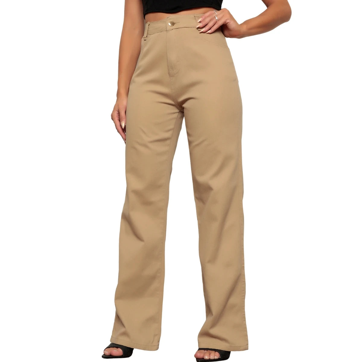 Não perca a oportunidade de dar um upgrade no seu visual! Adquira agora a sua Calça Sarja Feminina Cintura Alta Perna Larga e sinta-se confiante e elegante em qualquer situação!